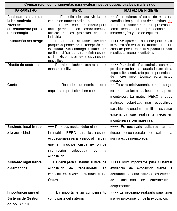 Sin embargo, cuando se trata de riesgos ocupacionales para la salud como son, los riesgos físicos, químicos, biológicos, ergonómicos y psicosociales, la evaluación con la matriz IPERC podría quedar muy lejos de la realidad, ya que la estimación subjetiva depende mucho de la percepción para elaborar la matriz IPERC.
